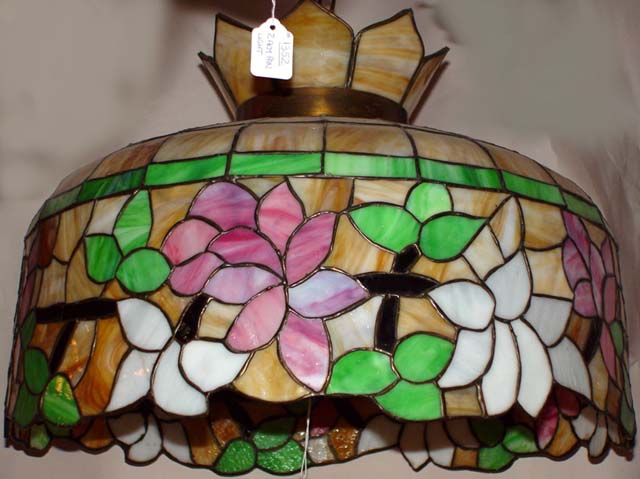 similar type: Tiffany type, quality vintage hanging leaded glass fixture | |