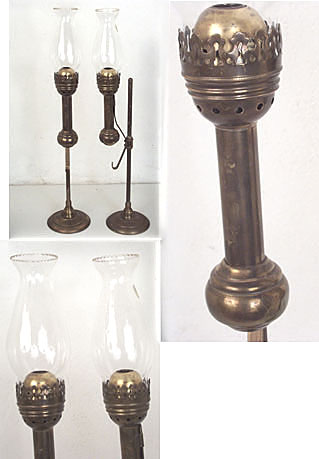 PAIR - brass candle lamps, late 19thC - non-electric, orig.candle